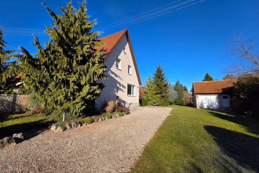 Auf einem außergewöhnlich großen Grundstück erwartet Sie eine solide erbaute Doppelhaushälfte in Ziegelbauweise mit ca. 104 m² Wohnfläche.